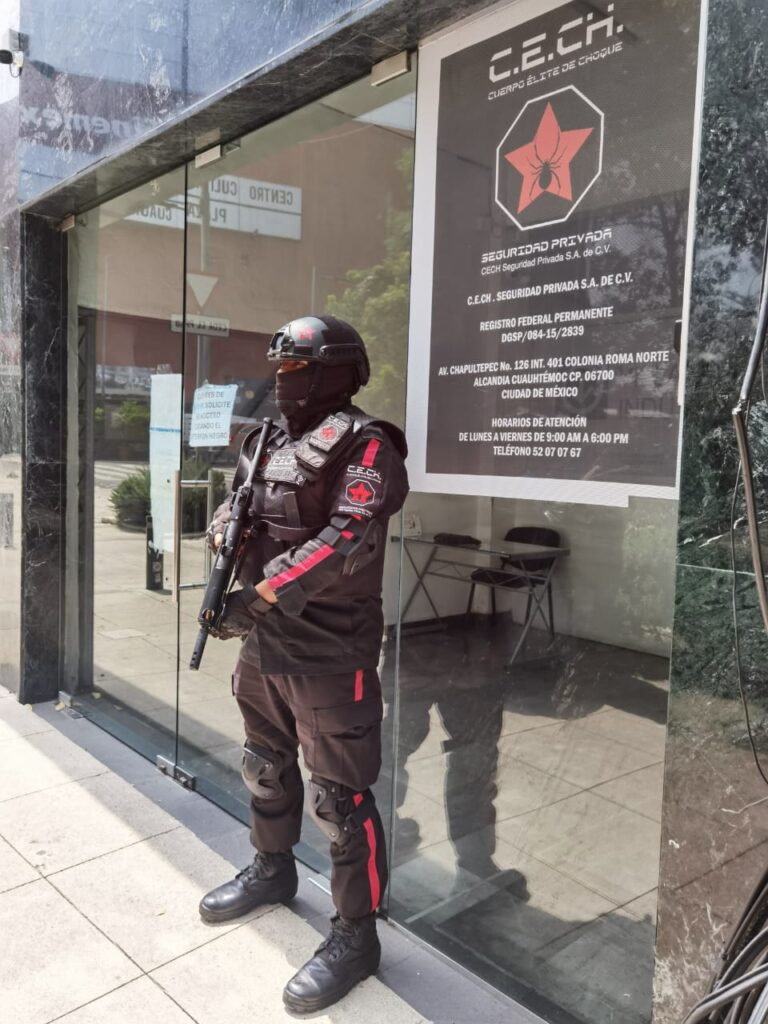 C.E.CH. (Cuerpo Élite de Choque), una empresa especializada en seguridad privada desde el año 2014 con Licencia Particular Colectiva de Portación de Armas de Fuego, reclutando Exmilitares y Exmarinos los cuales en algunos casos han sido miembros de las Fuerzas Especiales, Estado Mayor Presidencial, Grupos de Élite del Ejército Mexicano y de la Marina Armada de México.